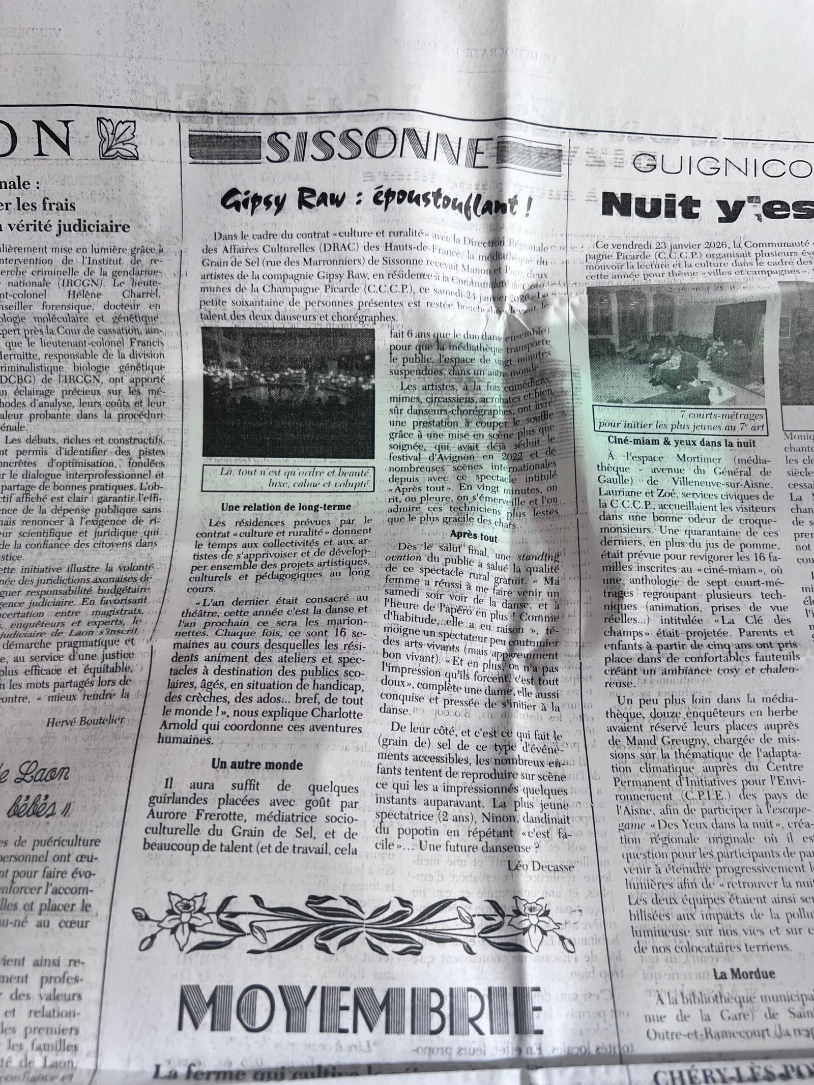 La compagnie GIPSY RAW a débuté ses premières semaines de résidence mission en Champagne Picarde (dans le cadre du programme Culture et Ruralité organisé par la DRAC HAUTS DE FRANCE et la Communauté de Communes).